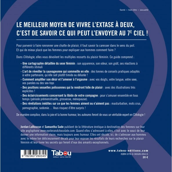 Basé sur des enquêtes auprès de la gente feminine, cet ouvrage explore sans complexe les plaisirs sexuels ressentis par plusieurs femmes interrogées.