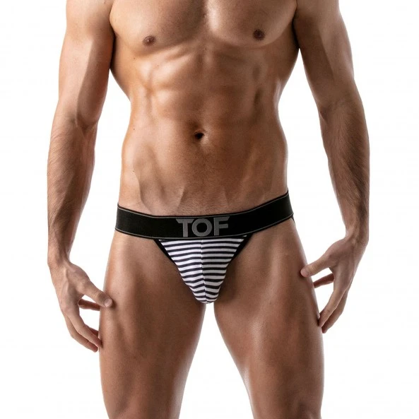 Le Jockstrap Stripes Push-Up TOF Paris est réalisé en tissu jersey coton-élasthanne doux et confortable au motif marinière tendance. Sa large ceinture élastique en jacquard offre un grand confort.