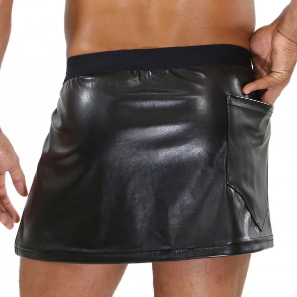 La Jupe Fetish TOF Paris est réalisée en microfibre imitant parfaitement le cuir. Cette jupe « paréo » entièrement ouverte sur le coté, s’enfile et s’enlève facilement grâce aux boutons pression.