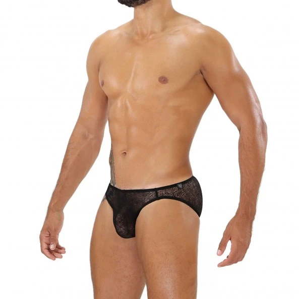 Le Mini Brief Bulge Lace TOF Paris est très sexy et confortable. Il est très échancré et dispose de dentelle française à motif floral.