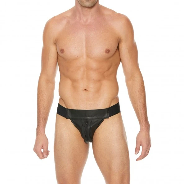 Le jock Zipper coche toutes les cases du jock réussi. Une bande élastique qui tient bien le jock en place, les fesses libres de toute entrave. Devant, il vous flatte et le cuir du matériau principal donne un effet très masculin à l’ensemble. Pour se mettre dans une ambiance typée SM, ou simplement parce que vous vous y sentez bien, le cuir est idéal. Mais ce n’est pas n’importe quel jock. Ce modèle possède une fermeture éclair sur le devant, juste là où il faut pour libérer les ardeurs de monsieur. On ne fera pas de dessin supplémentaire quand à l’utilisation de cette ouverture sur le sexe de ce jock. Et n’oubliez pas que la couleur du jock chez Uomo, c’est l’annonce de vos intentions : rouge pour le fist fucking, noir pour le SM et bleu pour l’anal.